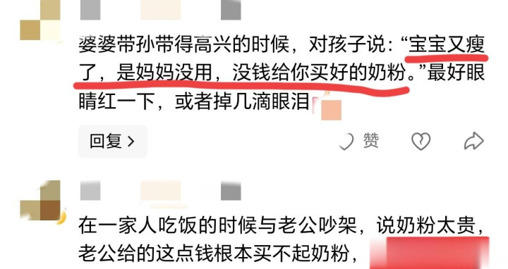 还刷到过一个更毁三观的帖子,一个宝妈说婆婆装眼瞎不给奶粉钱,问网友有什么办法逼婆婆出钱?更恐怖的是,还真有不少网友出馊主意!作为未来婆婆的我,已经开始瑟瑟发抖了!